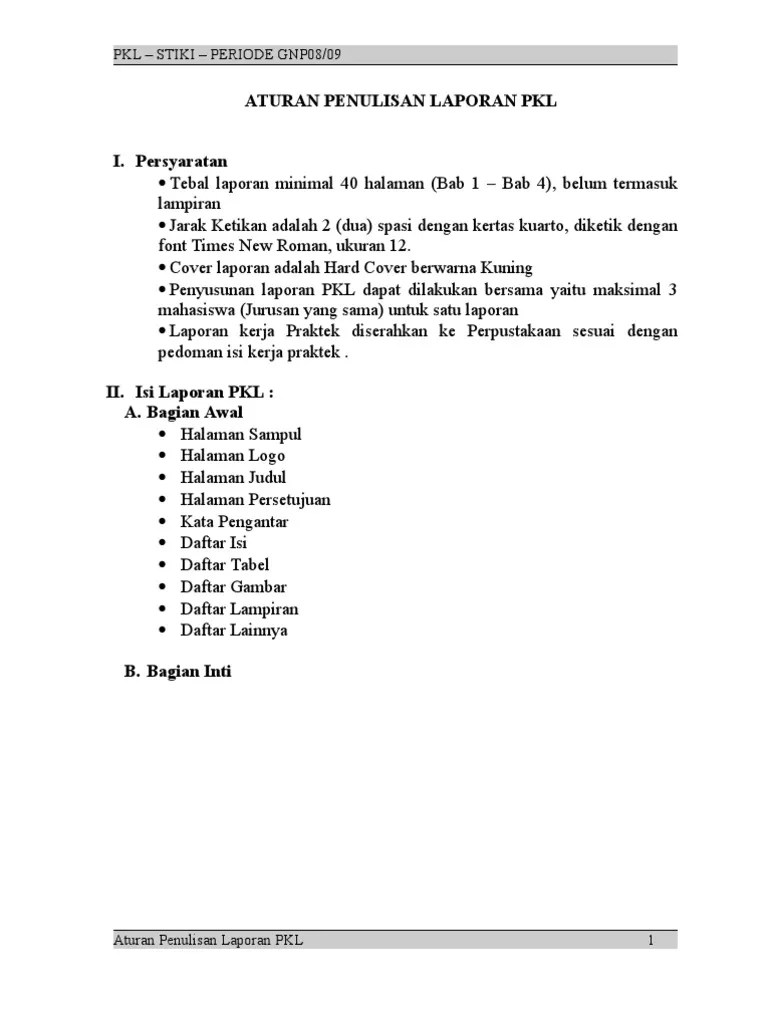 Diberitahukan kepada mahasiswa ilkom yang akan mengumpulkan laporan pkl, bahwa lampiran lampiran yang harus di jilid bersama laporan pkl adalah sebagai . Judul bab menggunakan huruf capital (pada setiap kata judul), diletakkan pada tengah. Buku panduan ini merupakan penyempurnaan dari. Contoh tentang penomoran bab, sub bab, anak sub bab dapat dilihat pada contoh daftar. C) daftar lampiran ialah rincian tabel yang berada di halaman tersendiri terletak sebelum bab i dalam suatu penelitian di dalamnya memuat .
