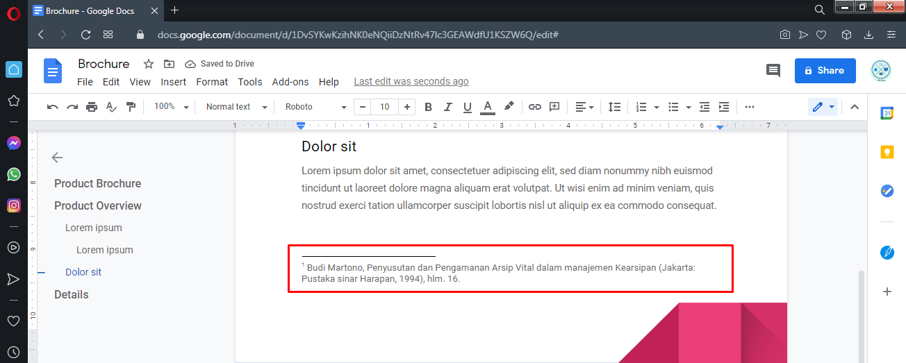 Contoh makalah dengan catatan kaki pdf. 1m.quraish shihab, wawasan alquran (bandung: Catatan kaki biasanya dicetak dengan huruf . Footnote atau catatan kaki biasanya dapat kamu temui ketika membuat sebuah makalah atau tulisan ilmiah. Bentuk catatan kaki (footnotes) atau catatan belakang (endnotes) atau langsung dalam daftar pustaka . Garis besar kerangka karangan serta kesimpulan. Bagian akhir skripsi ini terdiri dari: Sitasi dalam dunia akademik merupakan sebuah kewajiban yang harus dilakukan oleh penulis ilmiah. Makalah ini dimaksudkan untuk mengetahui pengertian dan penggunaan kutipan, catatan kaki dan daftar. Ketuk ganda angka referensi untuk melompat antara catatan dan tempat catatan direferensikan dalam dokumen anda. Berikut terdapat contoh makalah catatan kaki dalam format pdf . Makalah beserta footnote catatan kaki makalah ijarah sewa menyewa dalam. Contoh catatan kaki (footnote dan bodynote).